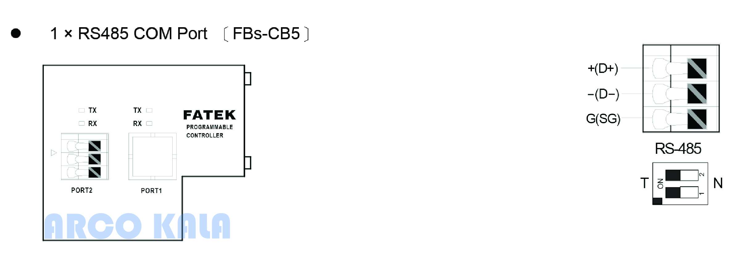 که پورت 2PLC را به 1 پورت RS485 تبدیل میکند,ابعاد این قطعه 73x90x25 میباشد که با تمام مدلهای PLC فتک سری FBS سازگاری دارد.
